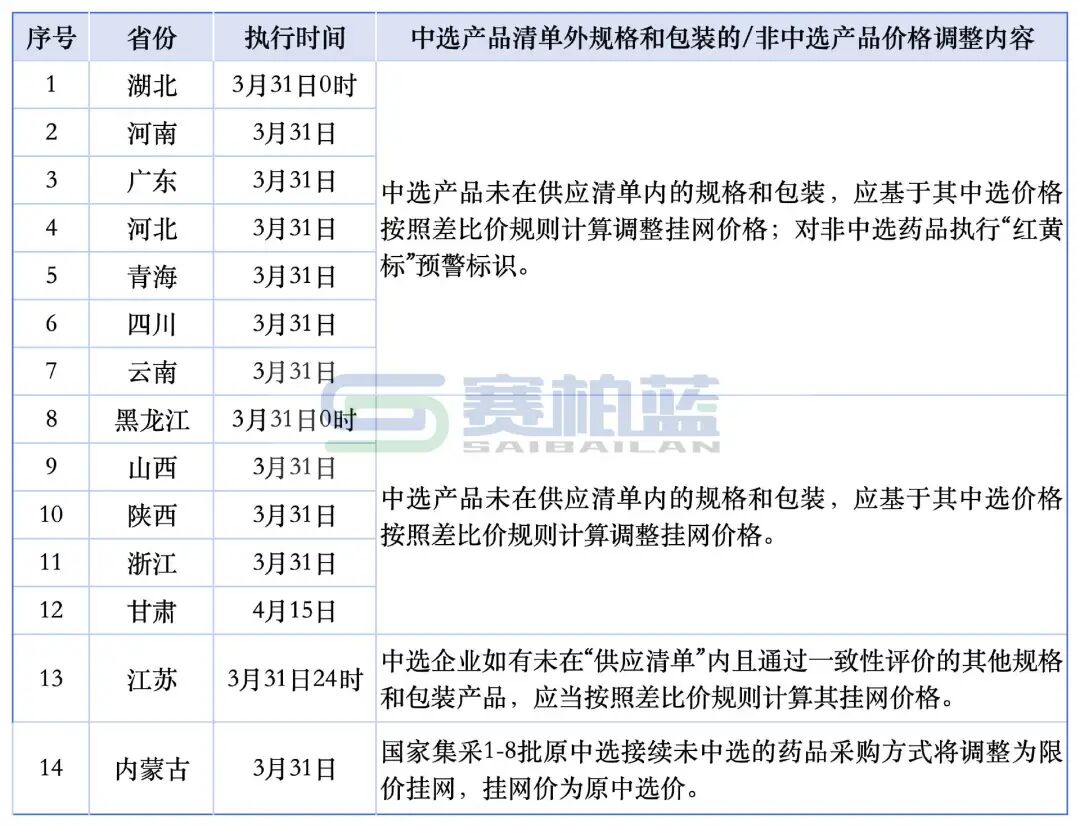 据赛柏蓝梳理,包括陕西省在内,至少27省明确1-8批接续落地执行时间,与此同时多省纷纷跟进非中选药品调价工作。