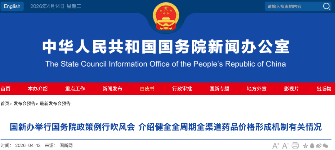 明日上午10时,国新办将召开有关健全全周期全渠道药品价格形成机制情况吹风会。
