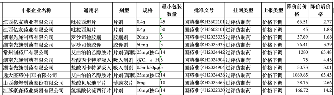 此外,还有贵州省583个药品降价,4月7日执行新挂网价;江苏省229个药品完成挂网价格调整,4月8日执行……