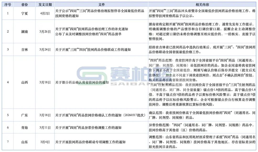 2026年,多省开展新一轮“三同”“四同”挂网药品价格治理及联动工作。