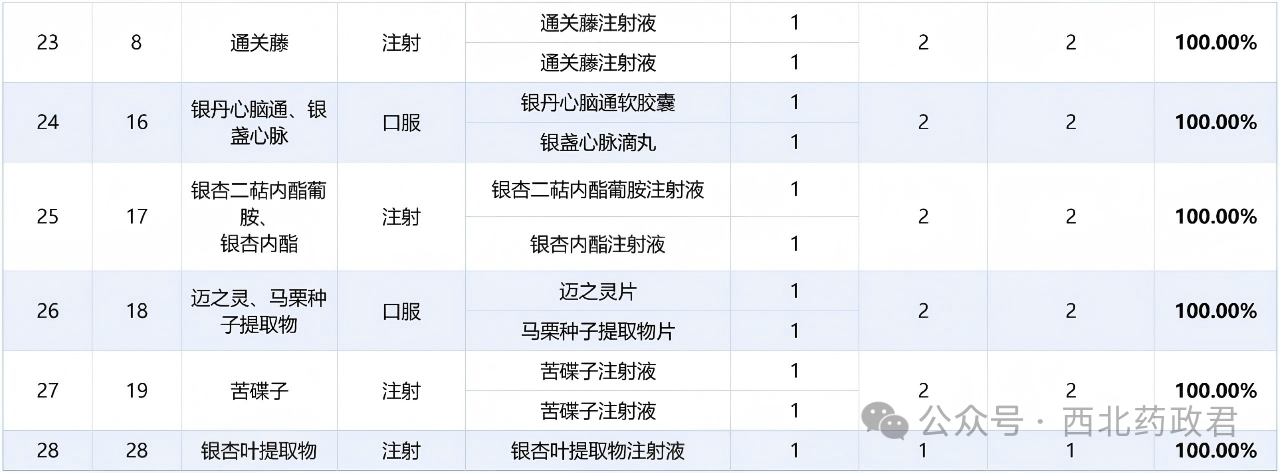 特点观察:在无需竞争的组别中,注射剂型 占据了相当大比例(4/7),这通常与其较高的生产质量和监管要求有关。